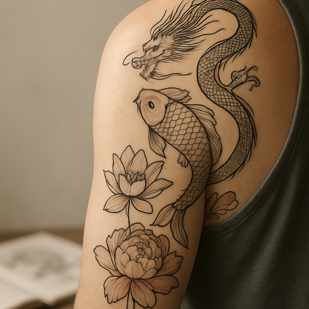 Viele Tattoos kombinieren mehrere Motive, um eine persönliche Geschichte zu weben. Ein Drache neben einer Koi-Szene kann die Idee von Transformation und anschließender Erhabenheit visualisieren. Dabei entsteht mehr als die Summe der Teile: Ein gut komponiertes Motiv wird zur visuellen Biografie.